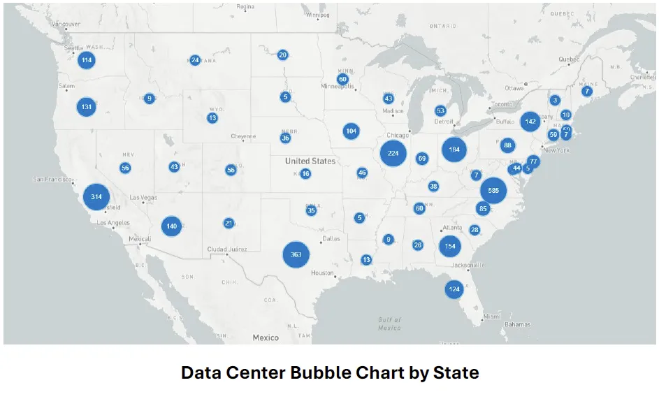Beyond national statistics, the demand is concentrated in particular regions. States like Virginia, Texas, Illinois, and Georgia have become major hubs for data center development due to tax incentives, access to land, and relatively low-cost electricity. Northern Virginia, dubbed “Data Center Alley” already hosts the highest concentration of data centers in the world and Dominion Energy, the state’s primary utility, has warned that demand is beginning to exceed what the local grid can reliably deliver.